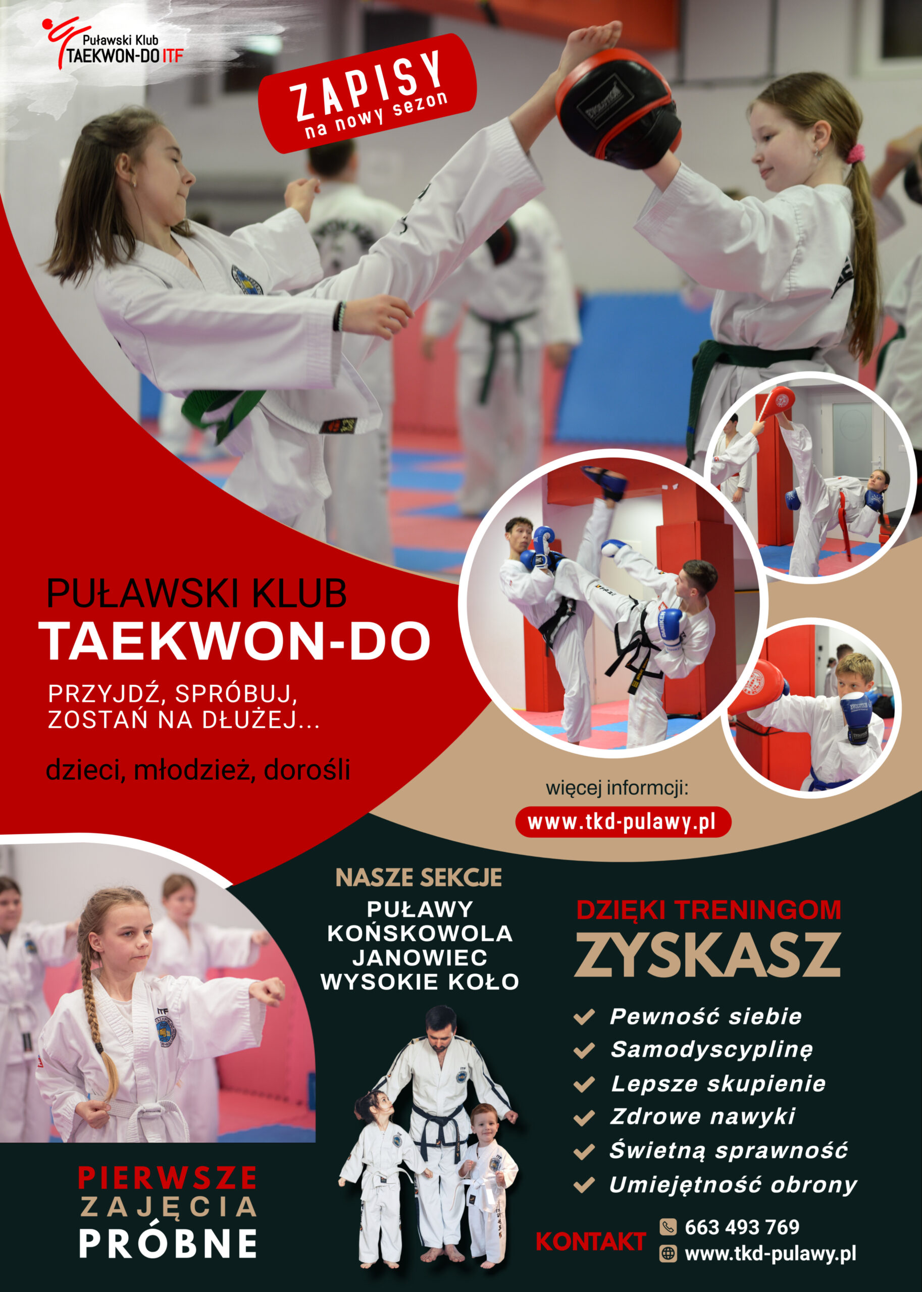 Zajęcia uczą dzieci samodyscypliny, kształtują ich charakter, odwagę, samozaparcie. Taekwondo w swoim założeniu ma zasady, których każdy taekwondoka powinien przestrzegać i to się przenosi czasem bardziej, a czasem mniej na każdy aspekt życia dziecka. Mam na myśli grzeczność, uczciwość i szacunek dla każdego. Odwaga, której nabywają, także odzwierciedla się w podejmowaniu decyzji na co dzień lub w szkole.